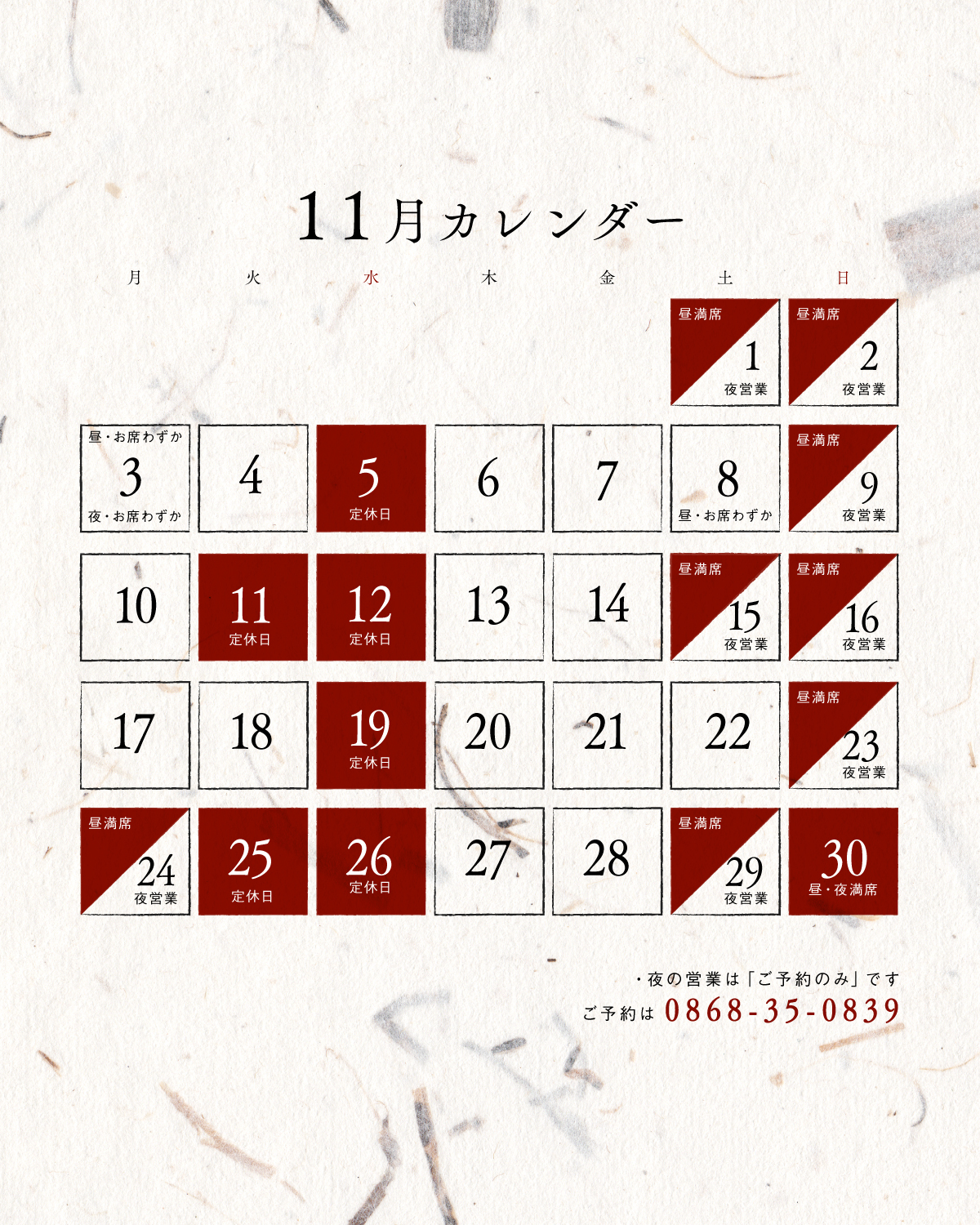 ※夜は前営業日17:00までの完全要予約(コースの場合は2営業日前まで)